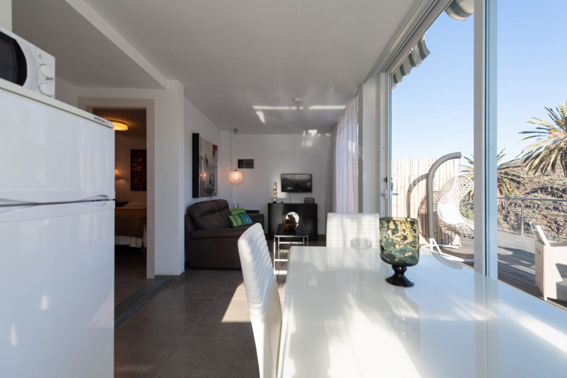 El complejo se ubica dentro de una finca con árboles frutales y un estanque de tortugas; y se compone de 6 apartamentos (con Una habitación ó Dos habitaciones) y 2 villas, además de las zonas comunes como la piscina, zona de barbacoa, solárium y zona chill-out. Además ofrecemos conexión vía WIFI totalmente gratuita y parking privado gratuito. Todas los apartamentos y las villas incorporan TV satélite de pantalla plana con entrada USB, baños con plato ducha, toallas, secador de pelo, ropa de cama, cocina totalmente equipada con nevera y terraza.