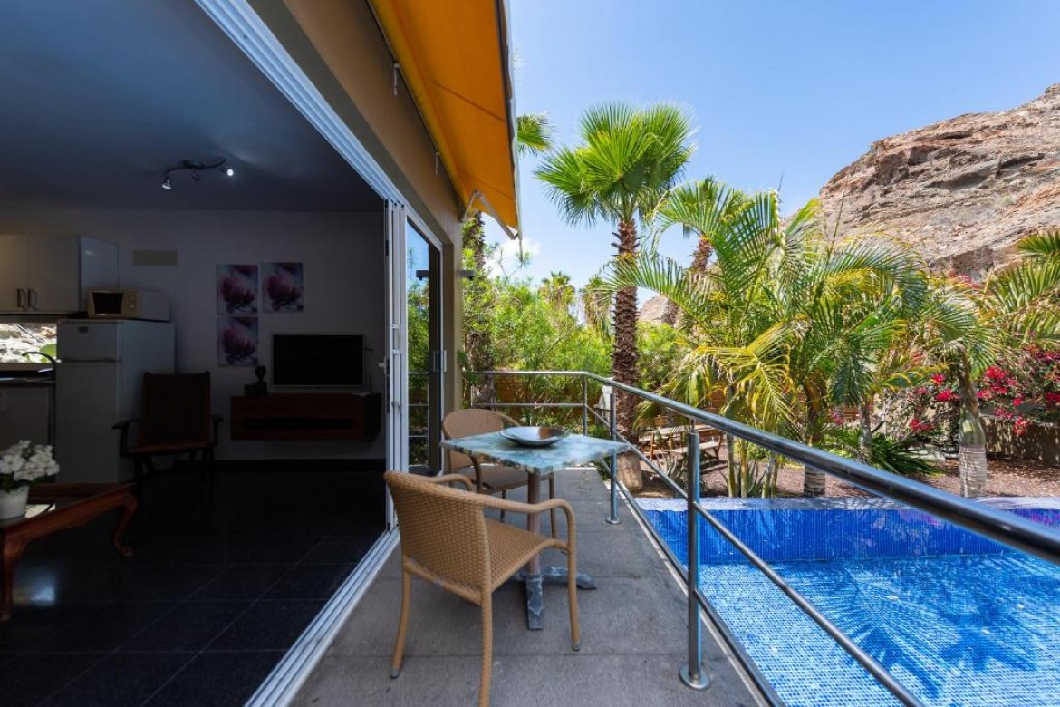 El complejo se ubica dentro de un barranco a 15 minutos caminando de la Playa del Cura; y se compone de 8 apartamentos (Estándar con una habitación ó Superior con dos habitaciones), además de las zonas comunes como la piscina, zona de barbacoa, y zona chill-out. Además ofrecemos conexión vía WIFI totalmente gratuita y parking privado gratuito. Todas los apartamentos incorporan TV satélite de pantalla plana con entrada USB, baños con plato ducha, toallas, secador de pelo, ropa de cama, cocina totalmente equipada con nevera y terraza.