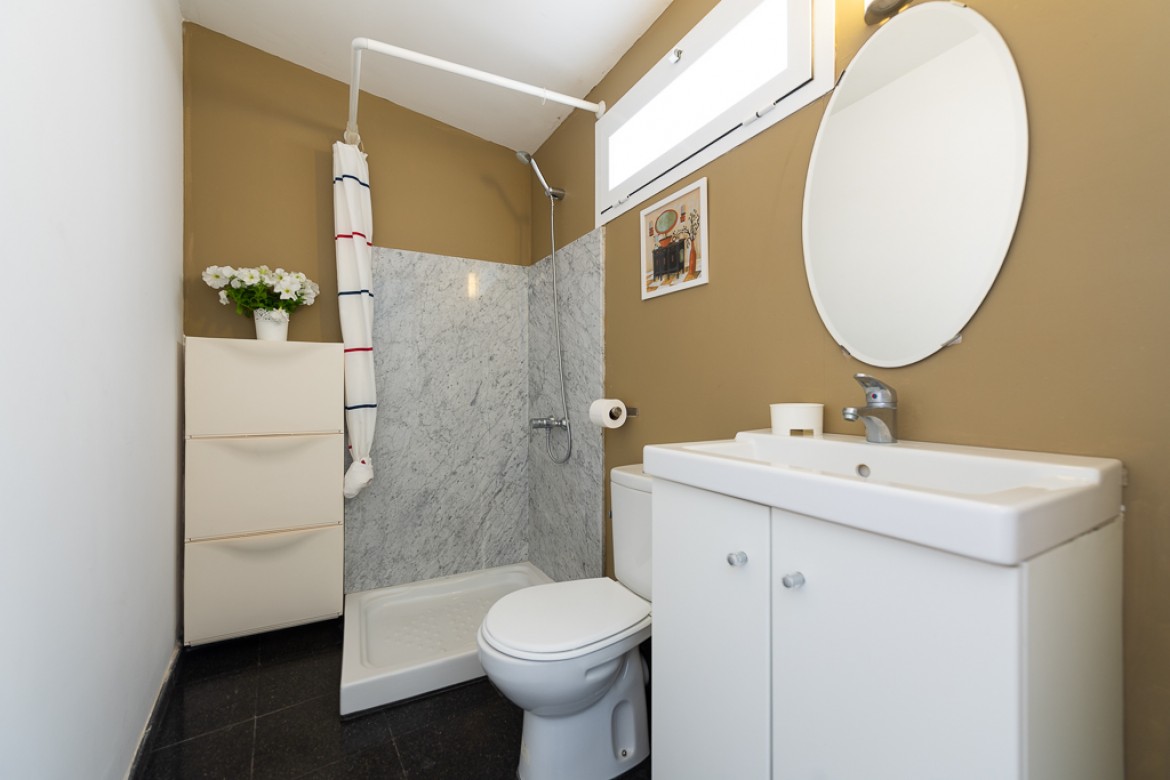 Apartamento de 30m² con un dormitorio, cocina, cuarto de baño con plato de ducha y amplia terraza con vistas a la montaña.