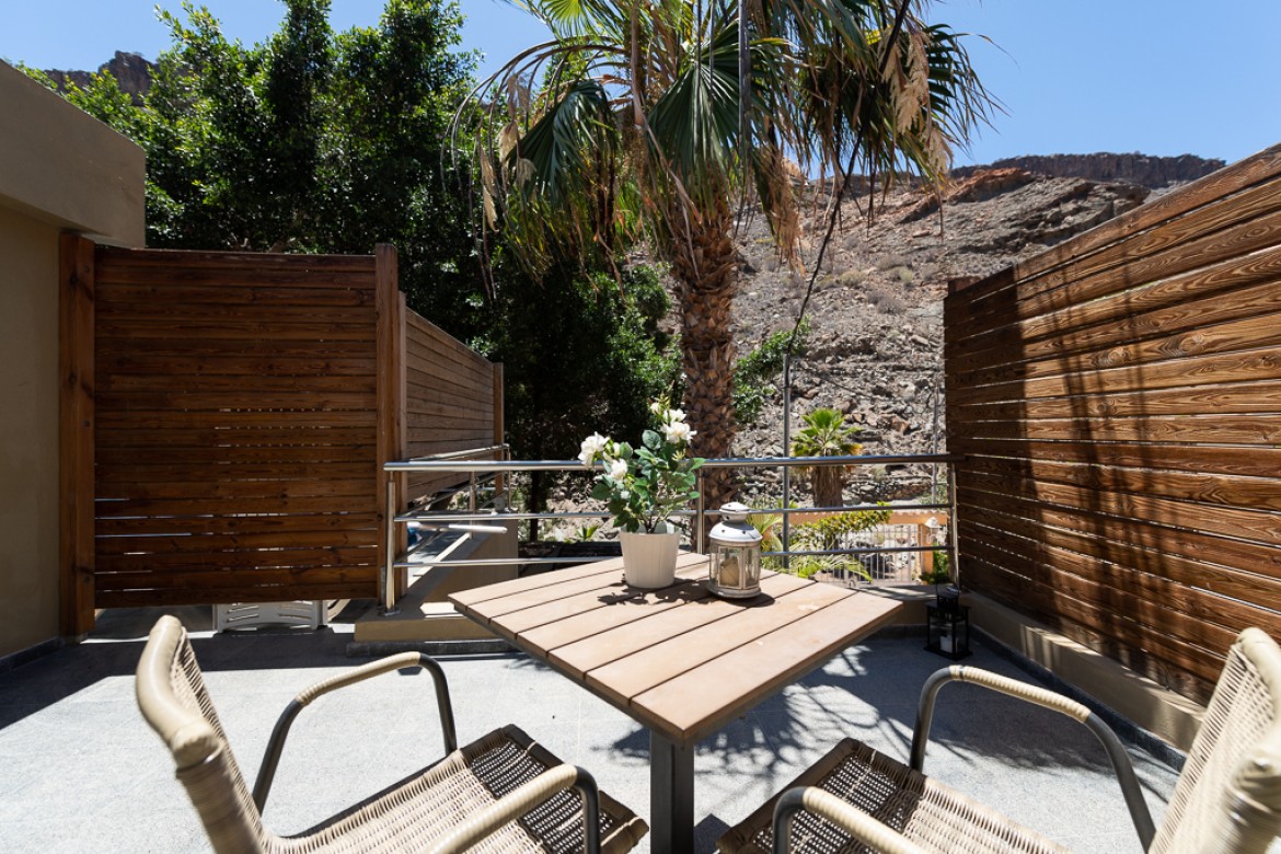 El complejo se ubica dentro de un barranco a 15 minutos caminando de la Playa del Cura; y se compone de 8 apartamentos (Estándar con una habitación ó Superior con dos habitaciones), además de las zonas comunes como la piscina, zona de barbacoa, y zona chill-out. Además ofrecemos conexión vía WIFI totalmente gratuita y parking privado gratuito. Todas los apartamentos incorporan TV satélite de pantalla plana con entrada USB, baños con plato ducha, toallas, secador de pelo, ropa de cama, cocina totalmente equipada con nevera y terraza.
